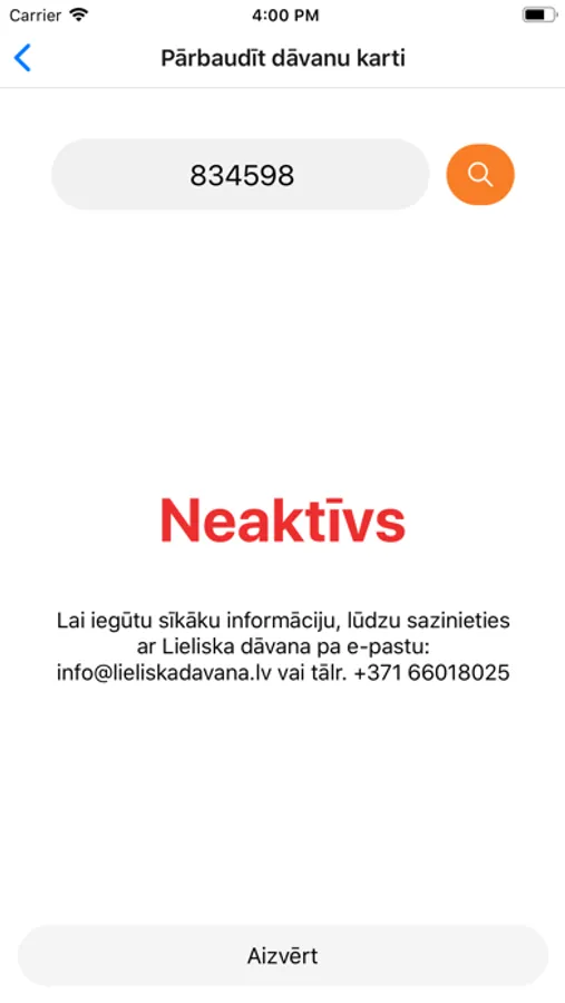 • Pārbaudīt dāvanu čekus/kartes/komplektus;