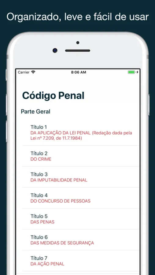 Este é o app mais organizado, leve e fácil de usar da Apple Store, com ele você tem acesso a todos os Códigos Penais atualizados.