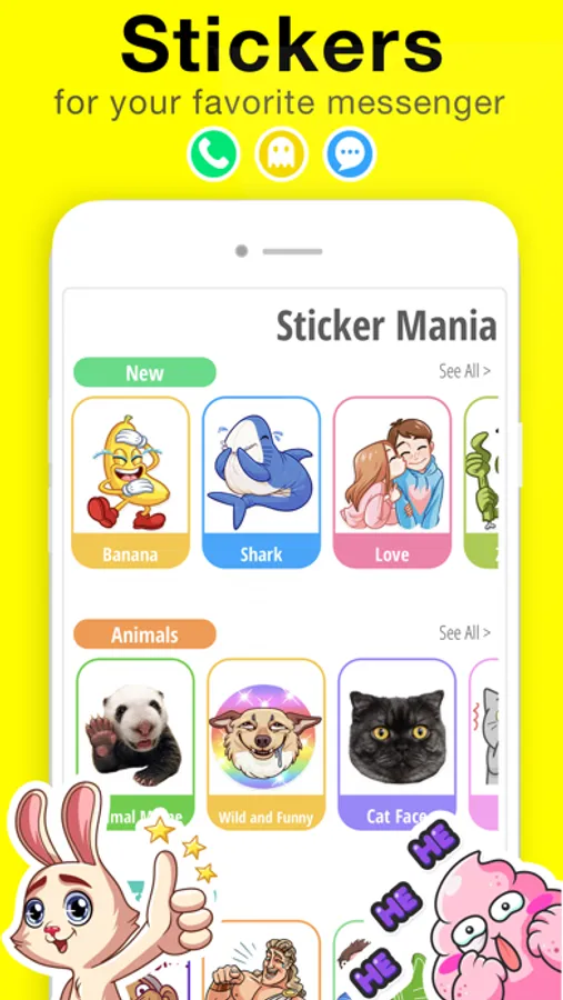 Get cool stickers for your WhatsApp, Snapchat and iMessage through your phone or tablet.