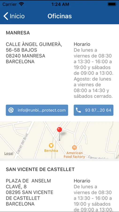 Localización y contacto con las oficinas de atención de Run Bike Protect.