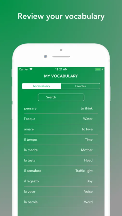 Learn 3500 Italian nouns, adjectives, articles and verbs to enrich your vocabulary. Memorize most common Italian words. Listen pronunciation of the words. Learn with word games, phrases and word lists. Best flash card app to learn Italian most common vocabulary and words!