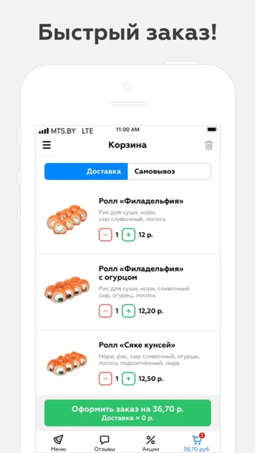 — Быстрый заказ с мгновенным подтверждением через приложение.