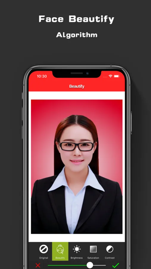 IDPhoto Wizard supports the facial beautify function. You can easily adjust the skin smoothing, skin whitening, saturation and contrast parameters to create extraordinary portraits.