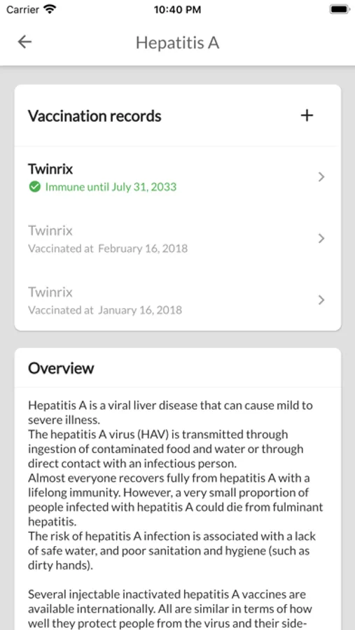 This app gets you to manage immunization records and when you need to get vaccinated next time.