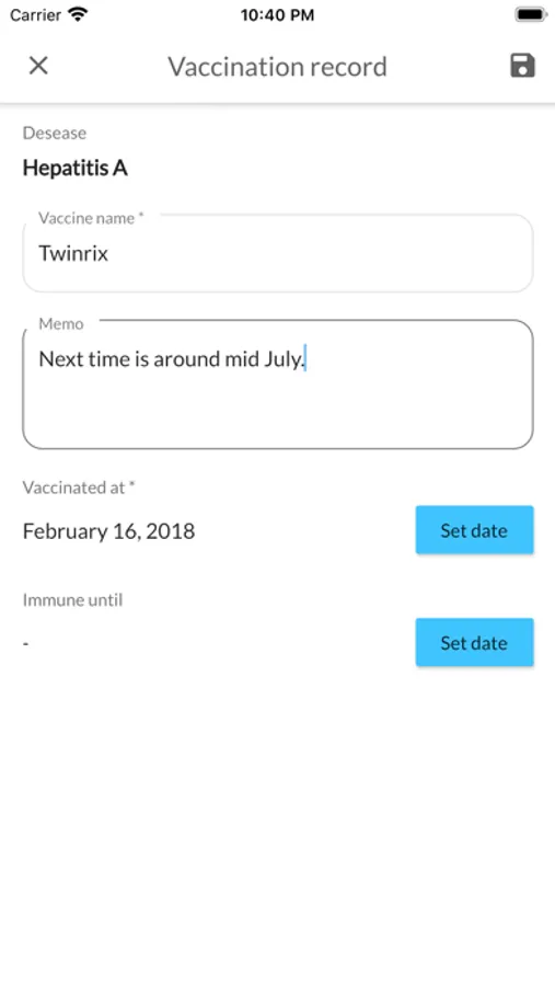 You can record when you got vaccinated and until when you will be immunized.