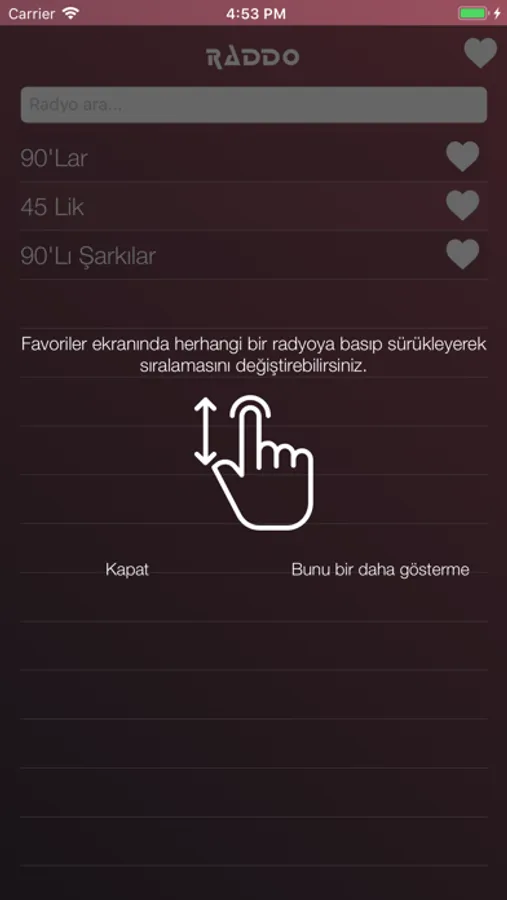 - İstediğiniz radyoyu favori listenize ekleyerek ve favori listenizi kendiniz düzenleyerek rahatça en sevdiğiniz radyoları dinleyebileceksiniz.