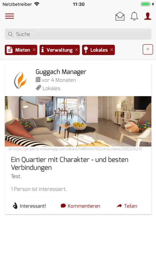 - Neuigkeiten und Benachrichtigungen zur Wohnung und Liegenschaft