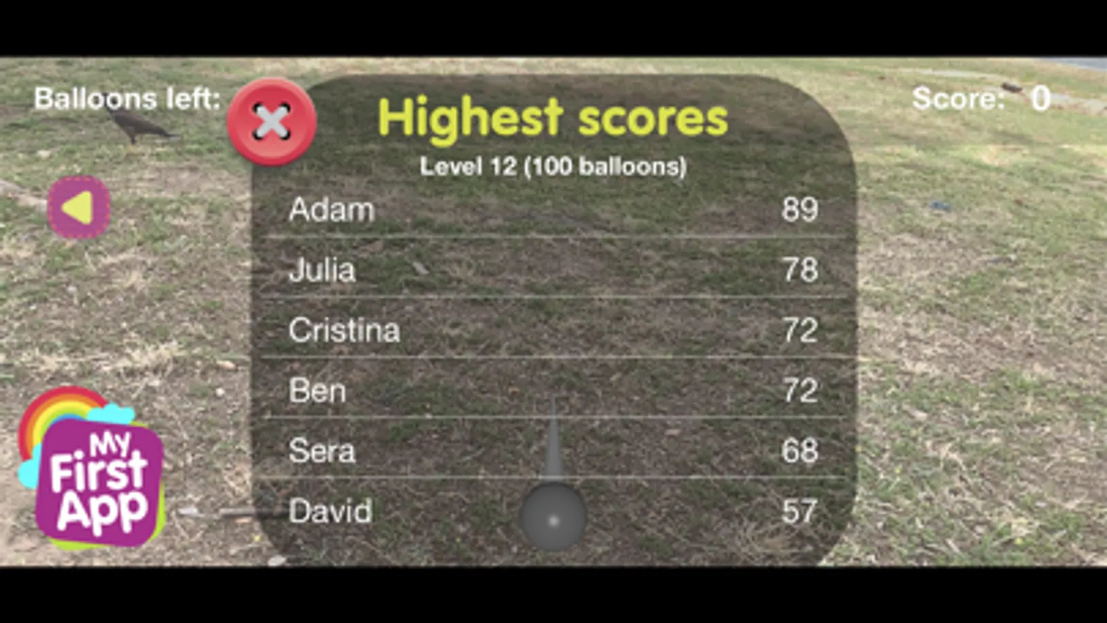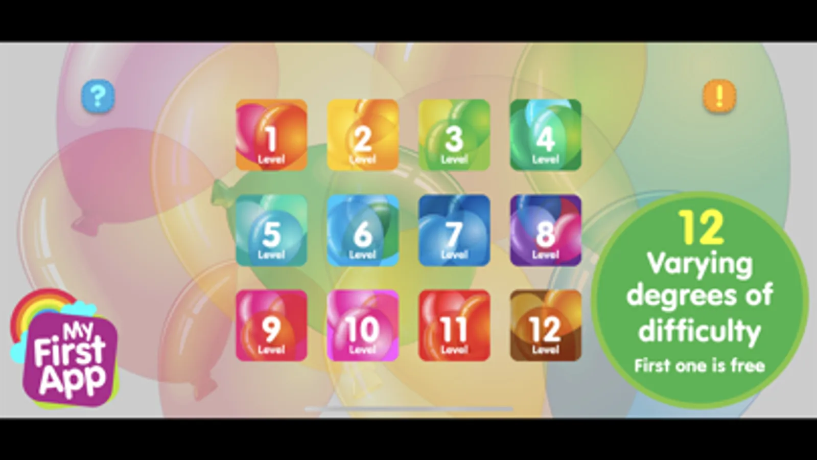 The first level is a demo, and the other 11 levels are varying degrees of difficulty (Number of balloons and speed grades).