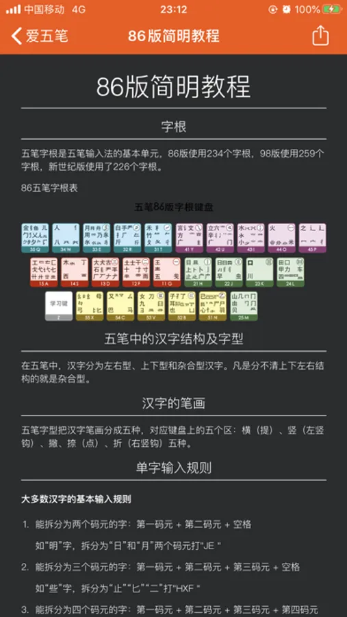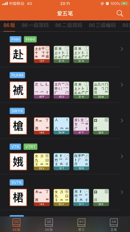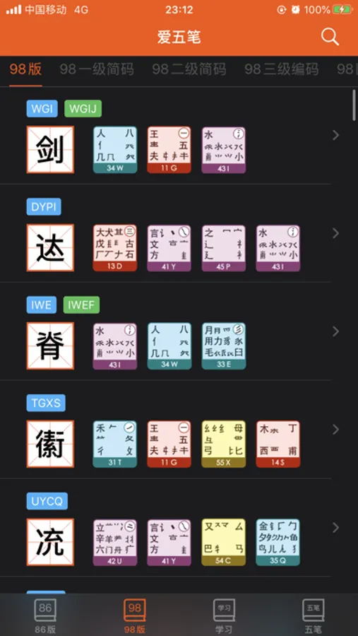 一直以来,我也经常遇到不记得一些字怎么拆解,特别是结构很复杂的汉字,很久不打也就忘记怎么打了,看到市面上的App,没有找到一个勉强比较符合的App,所以就一直想做一个自己用的爽的五笔App,特别是能把86和98版本做到一个App里面。所以,我希望有一个五笔学习的App:简单,轻便,快捷,就是爽!