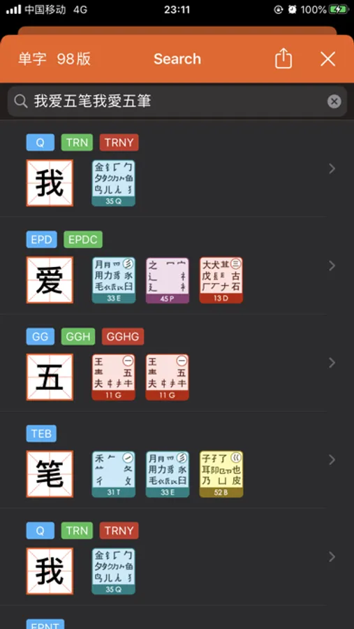 作为使用五笔输入法已经超过15年的骨灰级用户,我对五笔输入法的喜欢,已经不能单单止于喜爱!所以,App叫“爱五笔”,这是真爱!