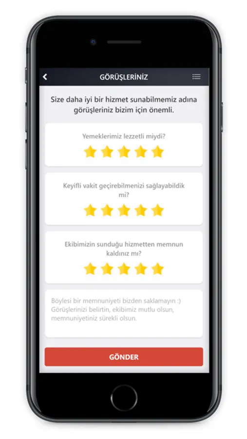- Yemeklerimiz ve hizmetimiz ile ilgili görüşlerinizi bildirin, kazanın