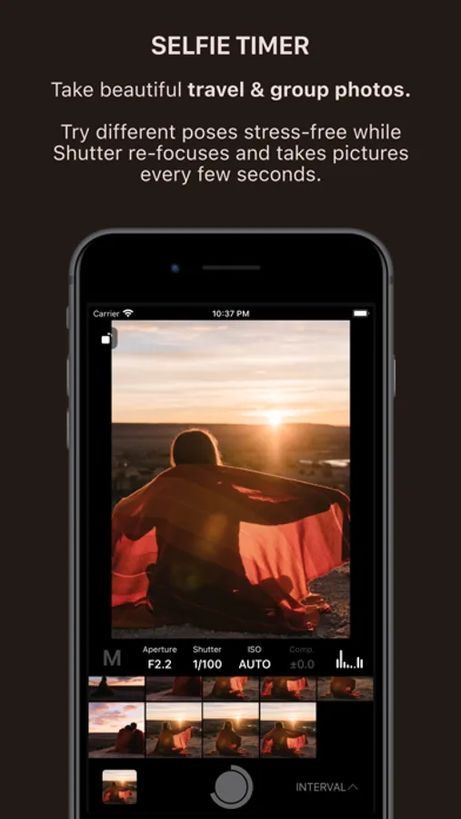 Ever been to a perfect travel destination with no one around to take a picture of you? Strangers cutting off your limbs? With our intervalometer, you can capture those sunrises and sunsets in the most remote locations.