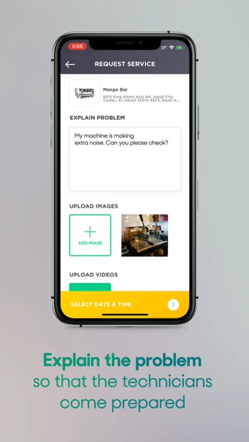 Create your free account to order installation or maintenance for any machine bought from our web stores easily, just install the app on your IOS device and follow the steps to create your request report.