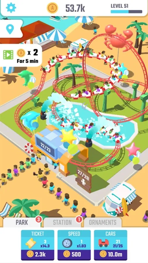 Own the funniest amusement park in the world! Welcome your clients with all kinds of fun activities.