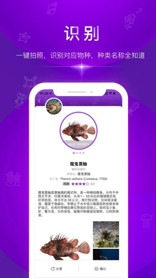 问鱼是一款主要用于常见海淡水产品物种识别的应用软件。支持500+水产包括鱼、虾、蟹、贝、螺、头足类、水藻、海胆等物种的识别鉴定,基本覆盖您日常生活、科普和户外运动需求。可拍照识别,可发帖交流鉴定,新手老炮皆相宜。