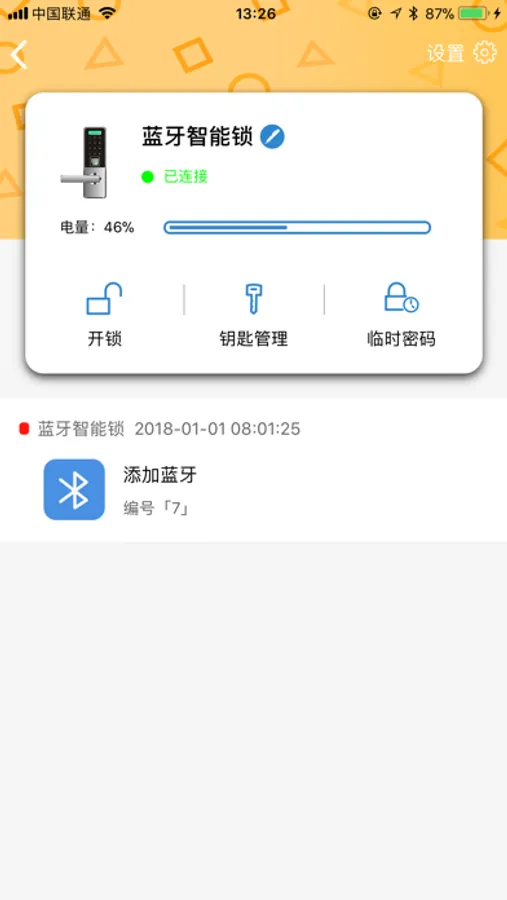 该应用无需联网,即可轻松管理您的智能门锁。简单的配对连接之后,即可使用手机蓝牙开锁、查看门锁的操作记录、添加删除门锁用户和更改门锁设置。智能门锁一切的使用情况都能了然于心,为您和您家人的安全保驾护航。