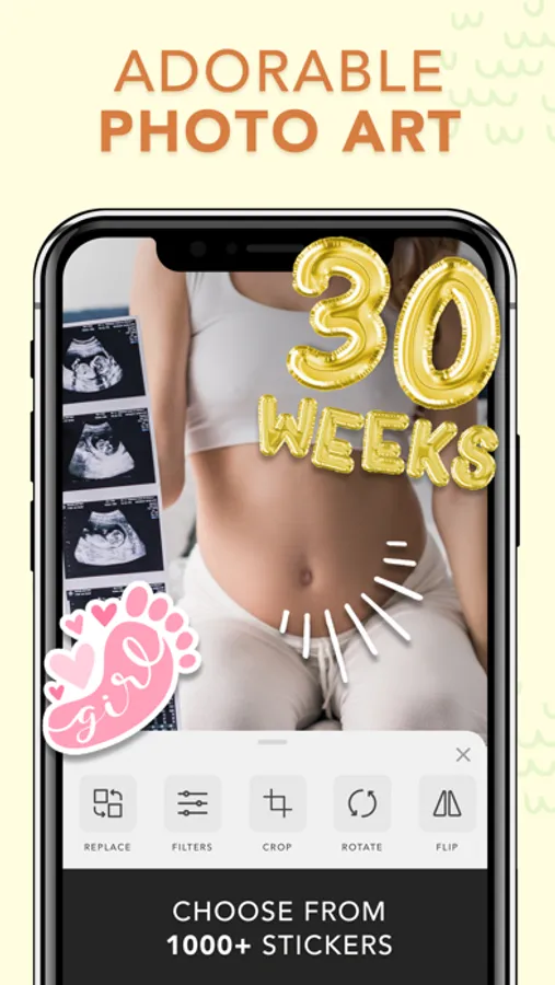Pregnancy Pics is the cutest way to track your baby milestones and watch your baby's development. We have the perfect sticker for every precious moment along your journey to motherhood. Get creative with your bump photos by exploring the hundreds of handcrafted stickers we have available to document every milestone---from trimester and weekly updates to unique and funny size comparisons for your baby. Sharing your creations is easy, so everyone can stay up to date on your progress as a mommy-to-be. Capture every moment with the help of Pregnancy Pics.