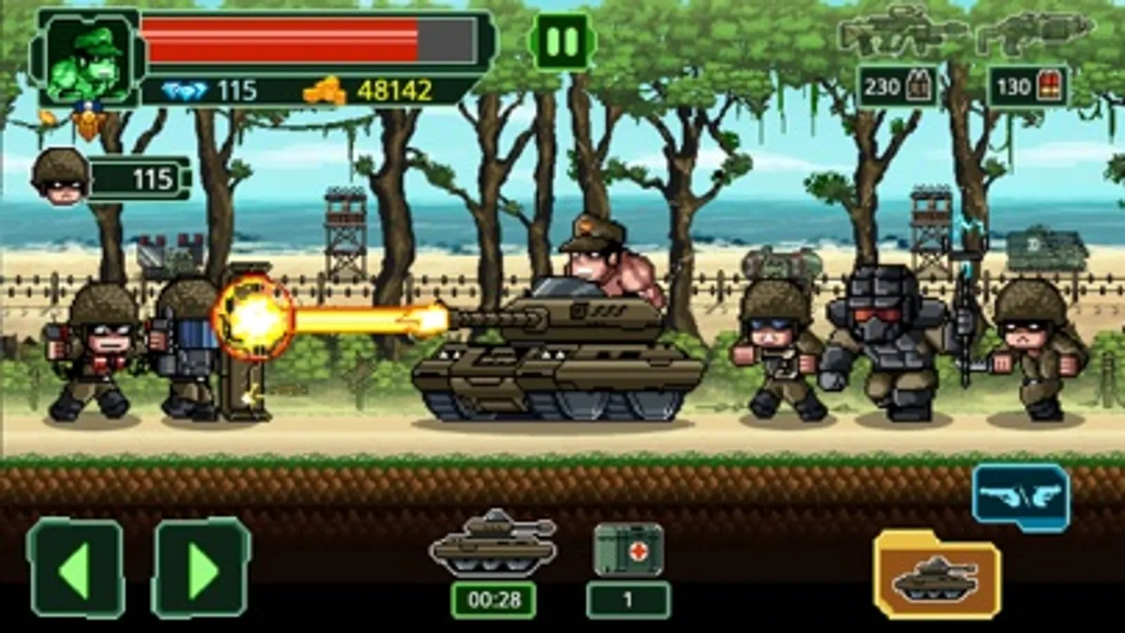 Get your metal guns ready and engage in the best shooting and action arcade game. It's time to call your soldiers to do their duty, as an army of renegade slugs has invaded an island and took control of it. Play with 4 brave soldiers, an epic squad of glorious commandos, heroes of previous war conflicts, choose your weapons, your vehicules (tanks, mechas...) and attack the ennemy in destructing battles.