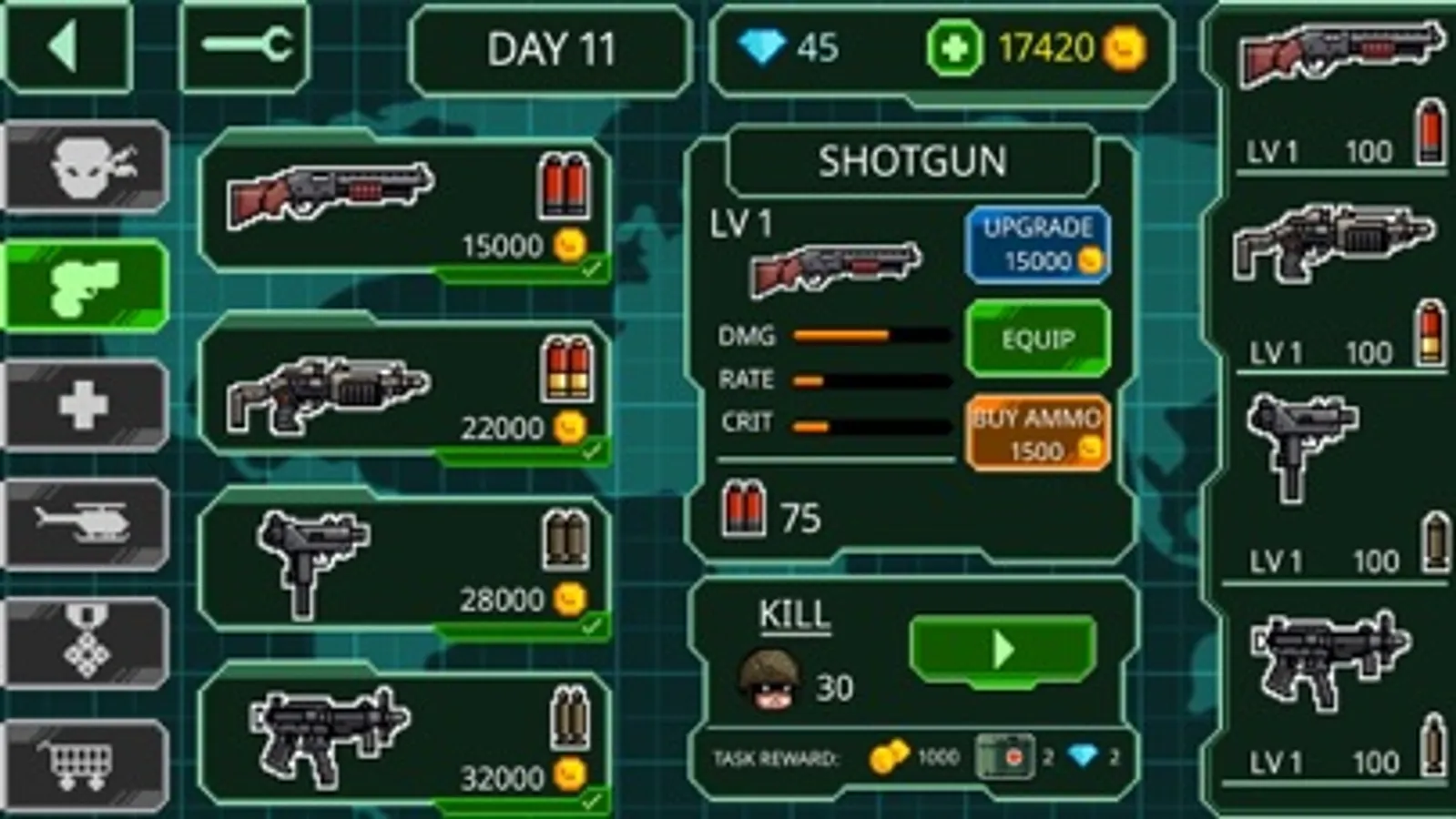 Your soldiers will use their shooting skills in many battlefields (nite, days, indoor, outdoor, ...), but shooting only is not an option, you'll need to boost their capacities, as the forces of the ennemy's army will grow over and over. Make sure your soldiers guns booms the ennemies as more and more combatants will come to badly attack you.