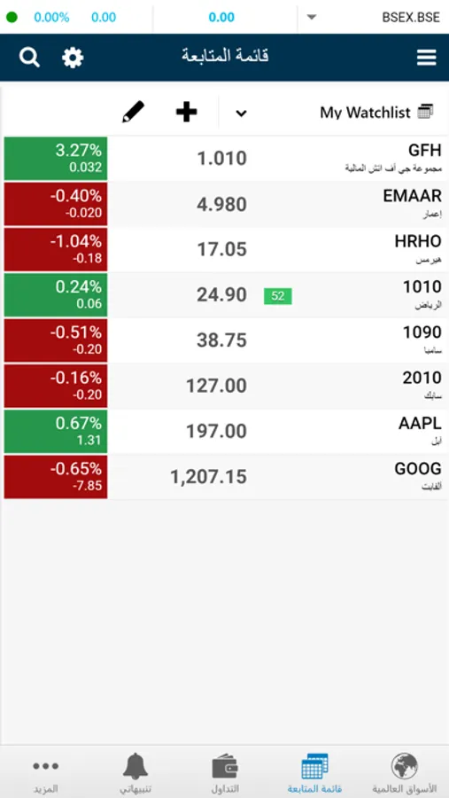 • Watch-list chart to analyze the market compared with average volume and percentage change