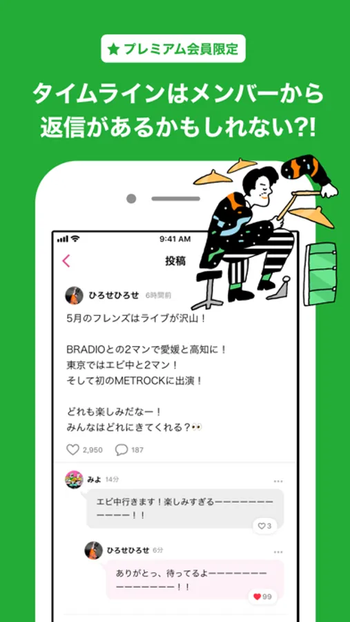有料期間中はメンバーのタイムライン投稿へのコメントや、ライブ・イベント等への先行申し込みなどもできます。