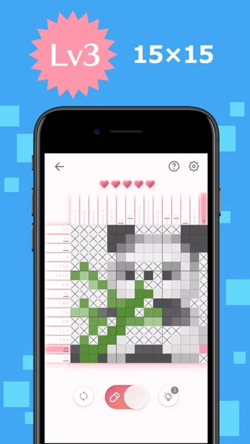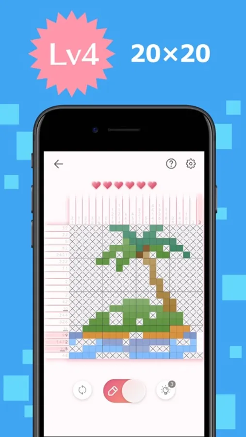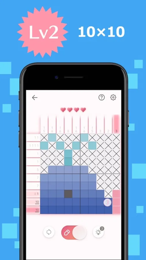 The game's goal is to complete a puzzle with numbers of left and above parts, which are tips for solving it.