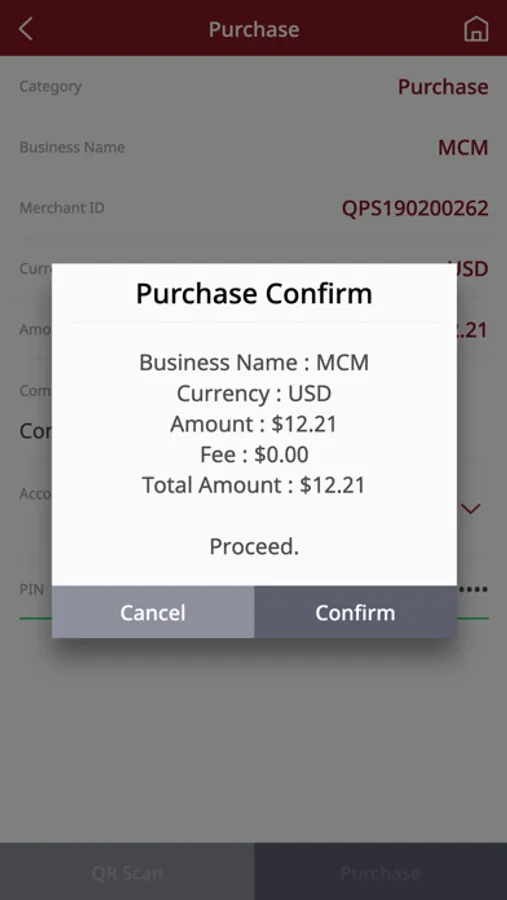 - Purchase service : Pay the price of goods and services by generating QR on merchant App and scanning with customer App.