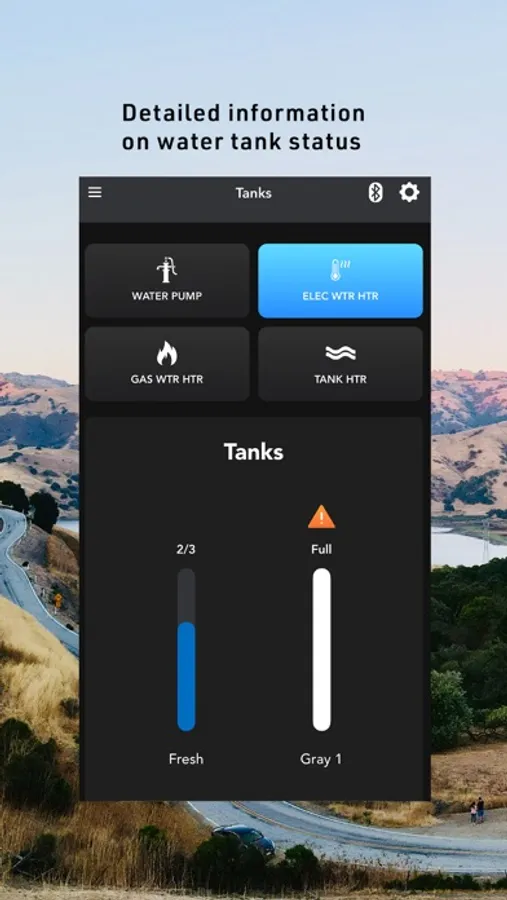 • Monitor - water tanks, temperatures, propane levels, tire pressure, battery voltages and more