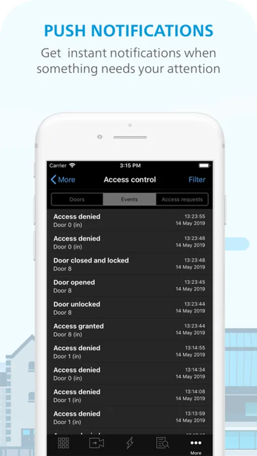 • Get peace of mind and stay constantly on top of things by receiving push notifications based on alarms defined in the Milestone solution