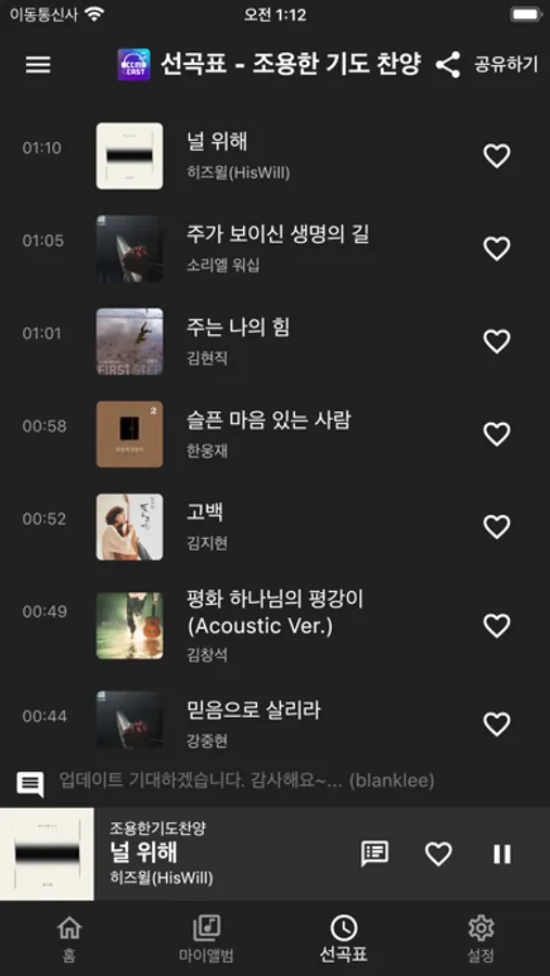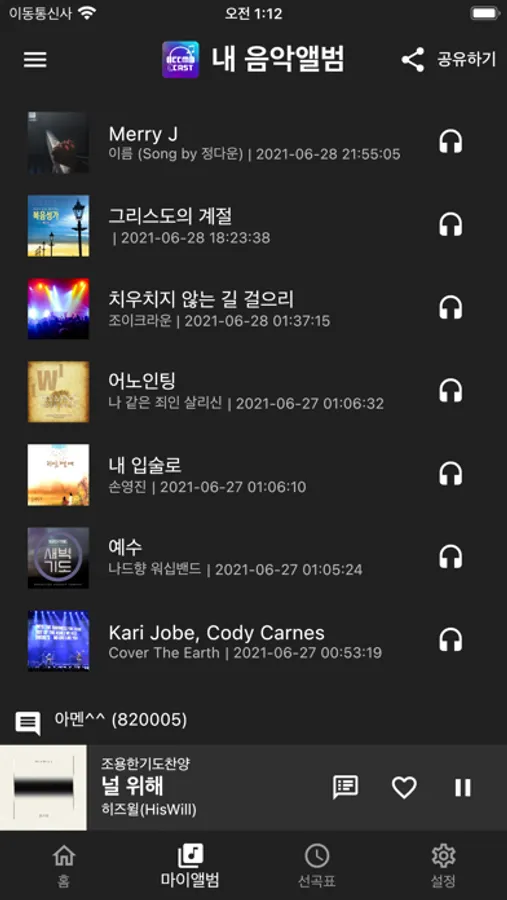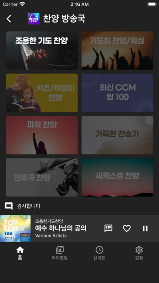 앱을 닫아도 찬양을 계속해서 들을 수 있습니다.