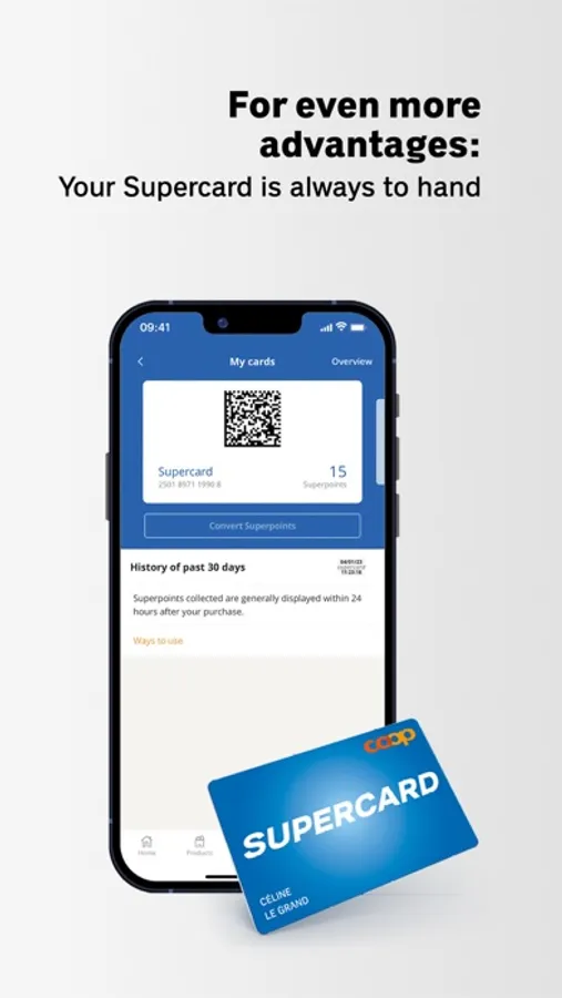 Store your Coop Supercard in the app to be able to use all of the benefits of your customer card. Next time you shop, simply scan the QR code in the app at the checkout to collect your points and activate your personal discounts. You can also view your points balance at any time in the app.
