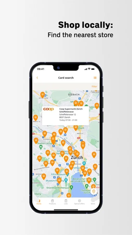 Find the nearest Coop store in your area quickly and easily. Use the integrated location search in the Coop supermarket app and it will show you the best route to the store.