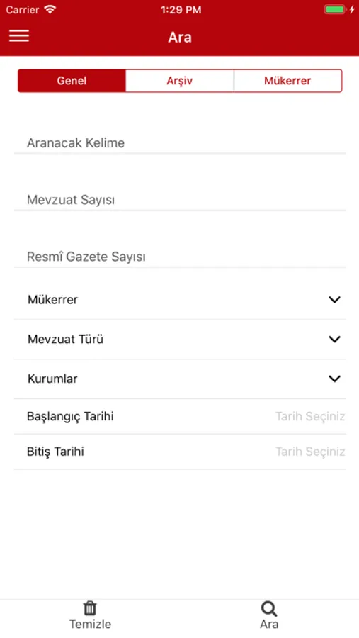 Resmî Gazete uygulamasında; ilk sayının yayımlandığı 7/2/1921’den itibaren tüm Resmî Gazete sayılarına “Arşiv” ve “Mükerrer Arşivi” bölümlerinden ulaşmak ve “Arama” Bölümünden de bunların içinde arama yapmak mümkündür.