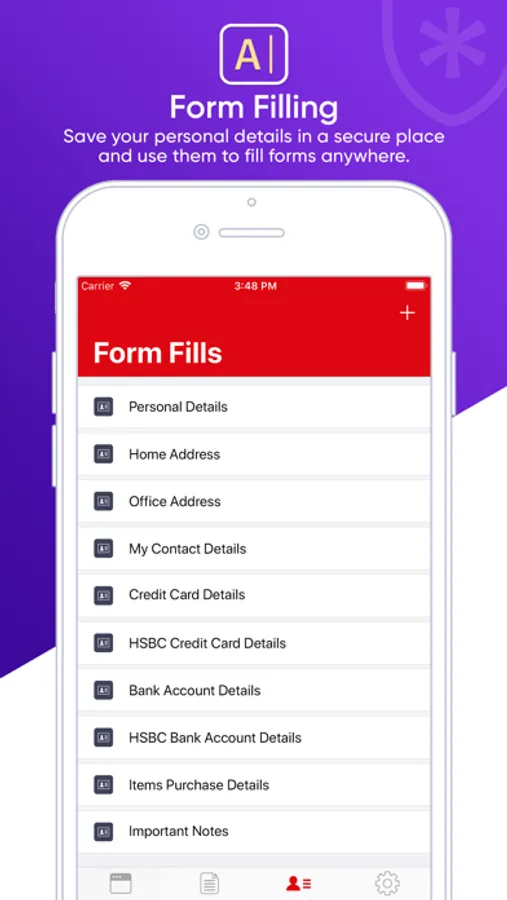Once the app is installed, choose ‘+’ to add sites like Facebook, Gmail, Netflix, etc. where the credentials can be filled in and saved.