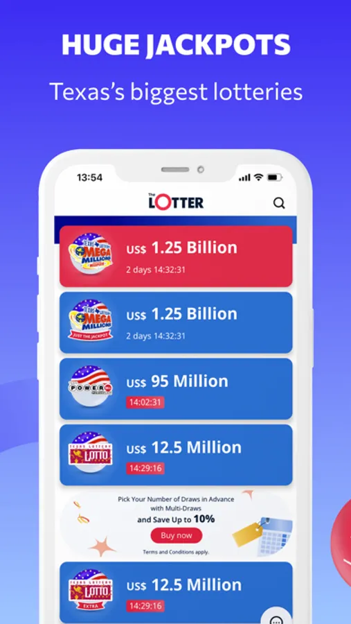 Use theLotter Texas’ lottery app to get all the information you need about the biggest draws in Texas: