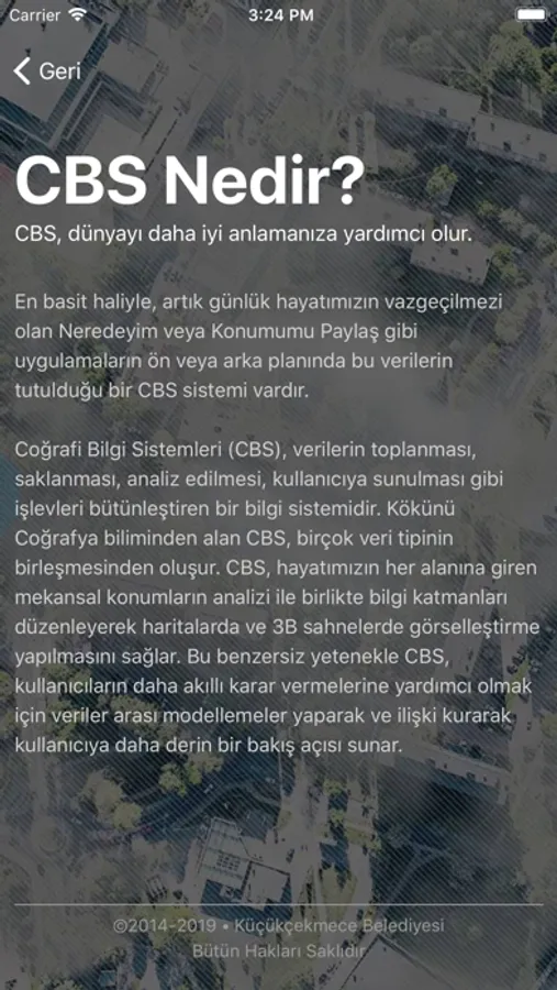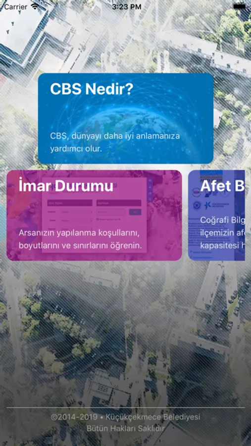 Küçükçekmece Belediyesi Bilgi İşlem Müdürlüğü tarafından hazırlanan bu uygulama yardımıyla İmar Durumu, Plan Notları, Afet Bilgi Sistemi ve Kent Rehberi'ne kolayca ulaşabilecek, cep telefonu ya da tabletleriniz ile işlemler yapabileceksiniz.