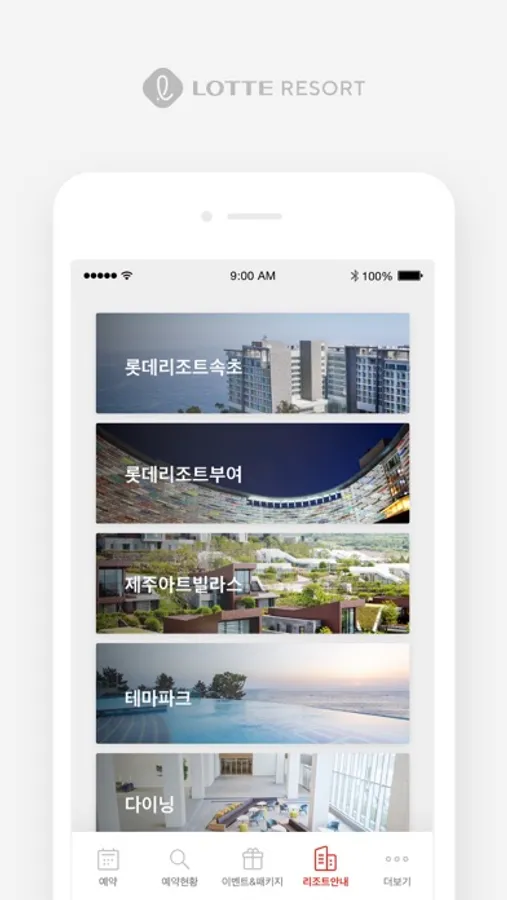 - 리조트 안내 : 리조트별 객실, 다이닝, 편의시설, 위치 안내
