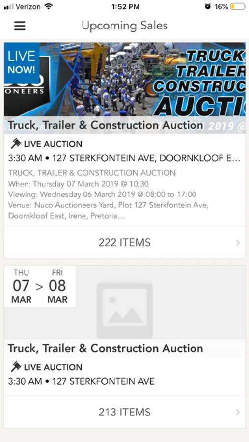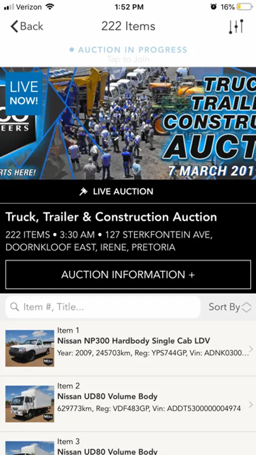 Nuco Auctioneers, an auctioneering house established in 2007, specializes in the auctioning of commercial vehicles, trucks, trailers, earthmoving, mining and construction equipment. Yard auctions are held every 3 weeks on Nuco Auctioneers’ premises. The company also prides itself in having facilitated a number of off-site auctions across South Africa, as well as cross-border and international auctions, which include countries such as Dubai, Australia and Mozambique, to name but a few. Nuco Auctioneers presents auctions on behalf of entities that have undergone business restructuring/liquidation/total business closure, entities that are occasionally forced to undergo asset de-fleeting and the company also sells the assets of dealers and the general public who feel the need to dispose of their assets via a public auction platform. With the Nuco Auctioneers App, you can preview, watch and bid in our auctions from your mobile / tablet device. Features include: •Quick Registration •Follow upcoming lots of interest •Push notifications to ensure you engage on items of interest •Watch and bid in live auctions