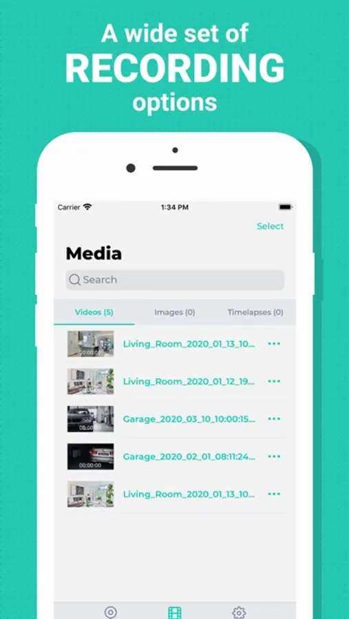 - TIMELAPSE takes 1 picture every second and creates a short video showing the situation at your house.