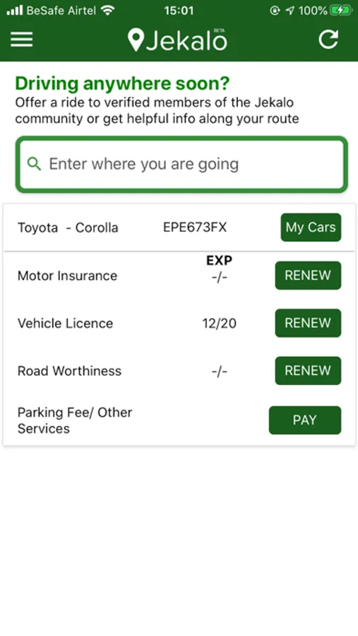 Ride owners on Jekalo gets amazing incentives for less such as Car Maintenance, Motor Third party Insurance, Fuel Vouchers, eTag/ Toll, Airtime , Data, and Cash withdrawal Option by offering a ride.