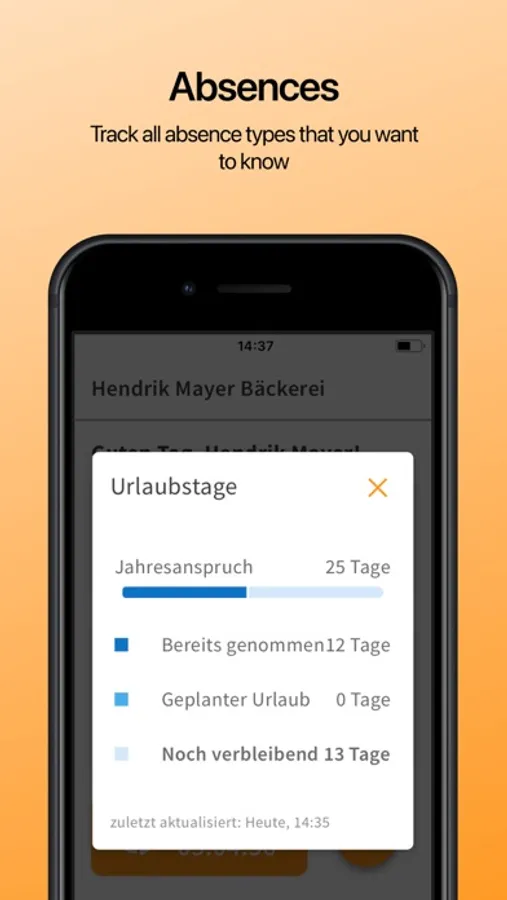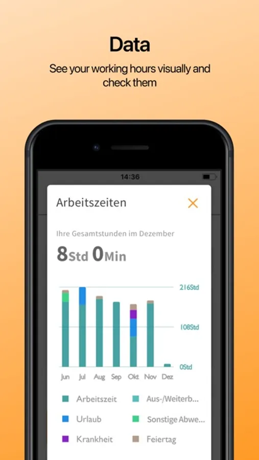 - Overview on your monthly working hours as well as vacations and sick leave days.