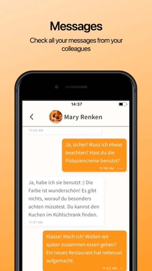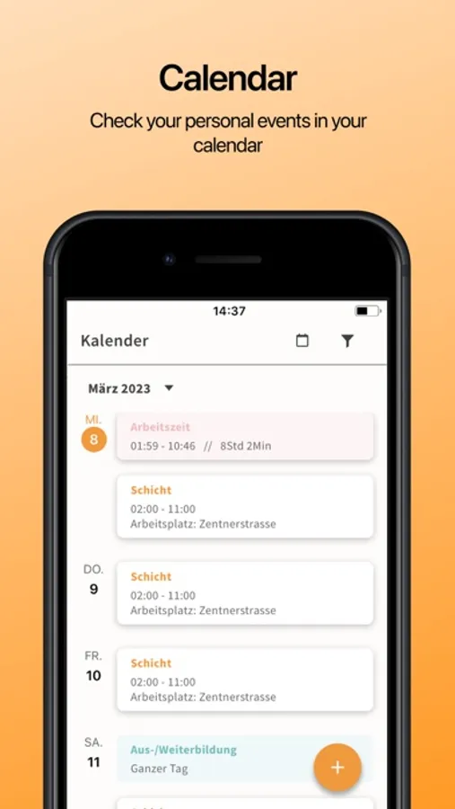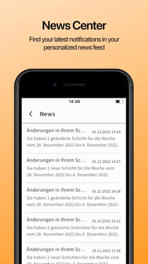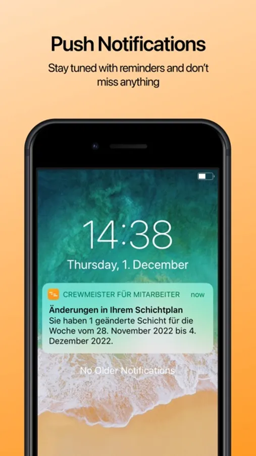 - The mobile shift plan informs you on any new shifts or changes in your shift schedule via push-notification.