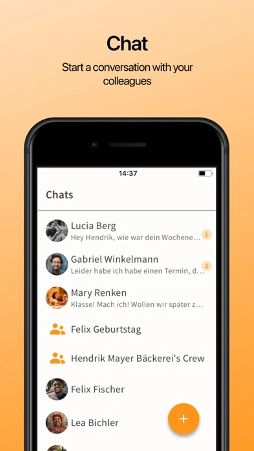 - use the CrewChat to chat with all your colleagues without the need of having their personal phone numbers.