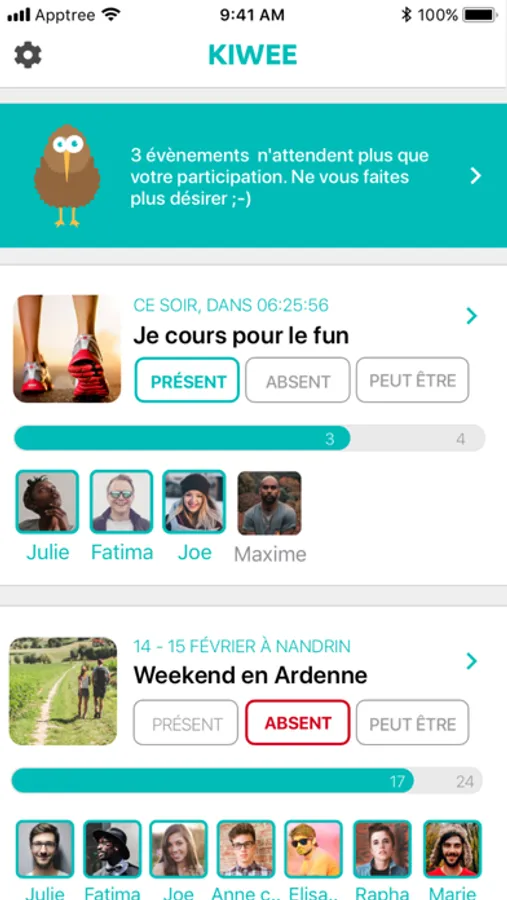 Avec KIWEE, organisez vous évènements et demander à vos contacts de confirmer leur présence.