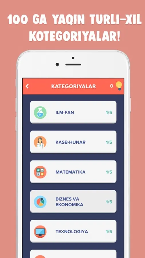So'z Top o'yinida turli xil kategoriyalar bo’yicha 300 dan ziyod turli xil murakkab bosqichlar mavjud, demak zehningiz va so’z boyligingiz charxlanishiga yetarlicha qiziqarli mashqlar mavjud. Aqlingiz zavqli mashqlar uchun sizdan minnatdor bo’lishi aniq. O’yinning barcha bosqichlaridagi so’zlarni toping va haqiqiy so’z bilimdoni ekanligingizni isbotlang!