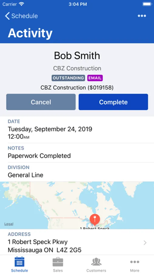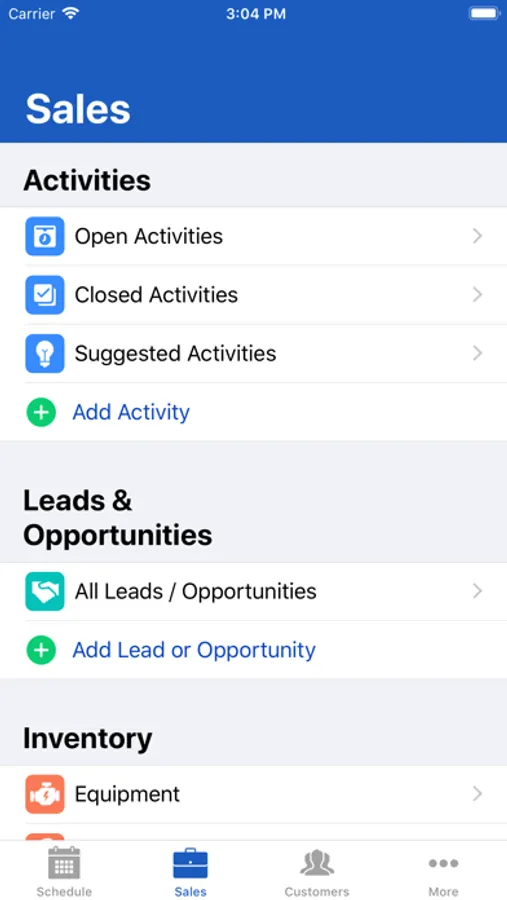 • Simply complete a sales activity or schedule a follow-up action to keep the sales cycle moving with just a couple of taps