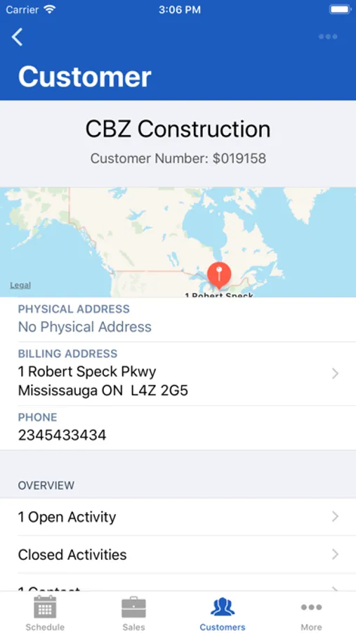 • Activity page provides ability to easily log account activity, find a contact, make a call or send an email • While on the road and prior to meeting with a customer, quickly look up related activities, equipment and issues from your mobile device