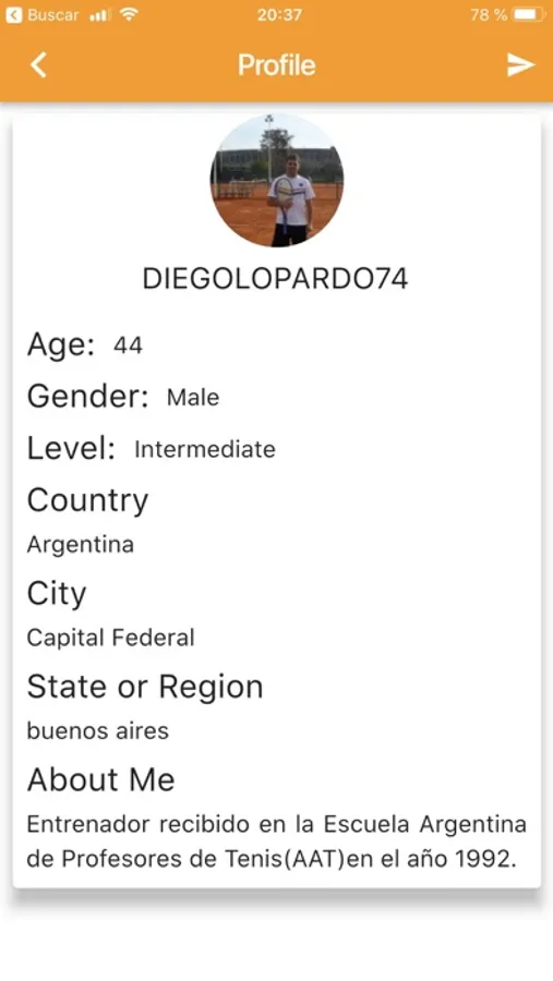 - Send private messages to another users to arrange a tennis match or ask for tennis lessons.