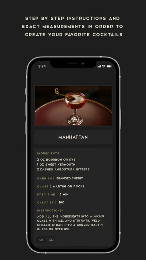 We offer step by step instructions and exact measurements in order to create your favorite cocktails. The app helps you pick the right glassware and garnish as well as providing the approximate prep time. Also, there is a fun fact on the history of the cocktail.