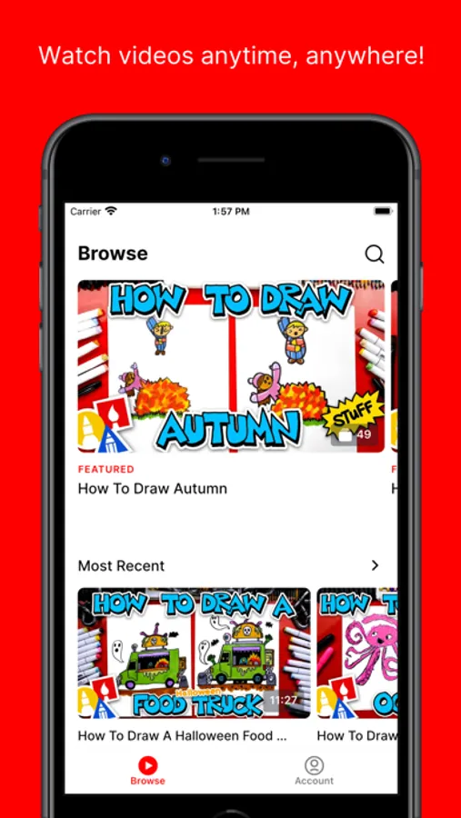 The Art for Kids Hub app provides easy access to to our massive catalog of art lessons and exclusive videos included in our membership subscription on all your devices. You can stream videos on your device, cast videos to other enabled-devices, and download videos to watch offline.